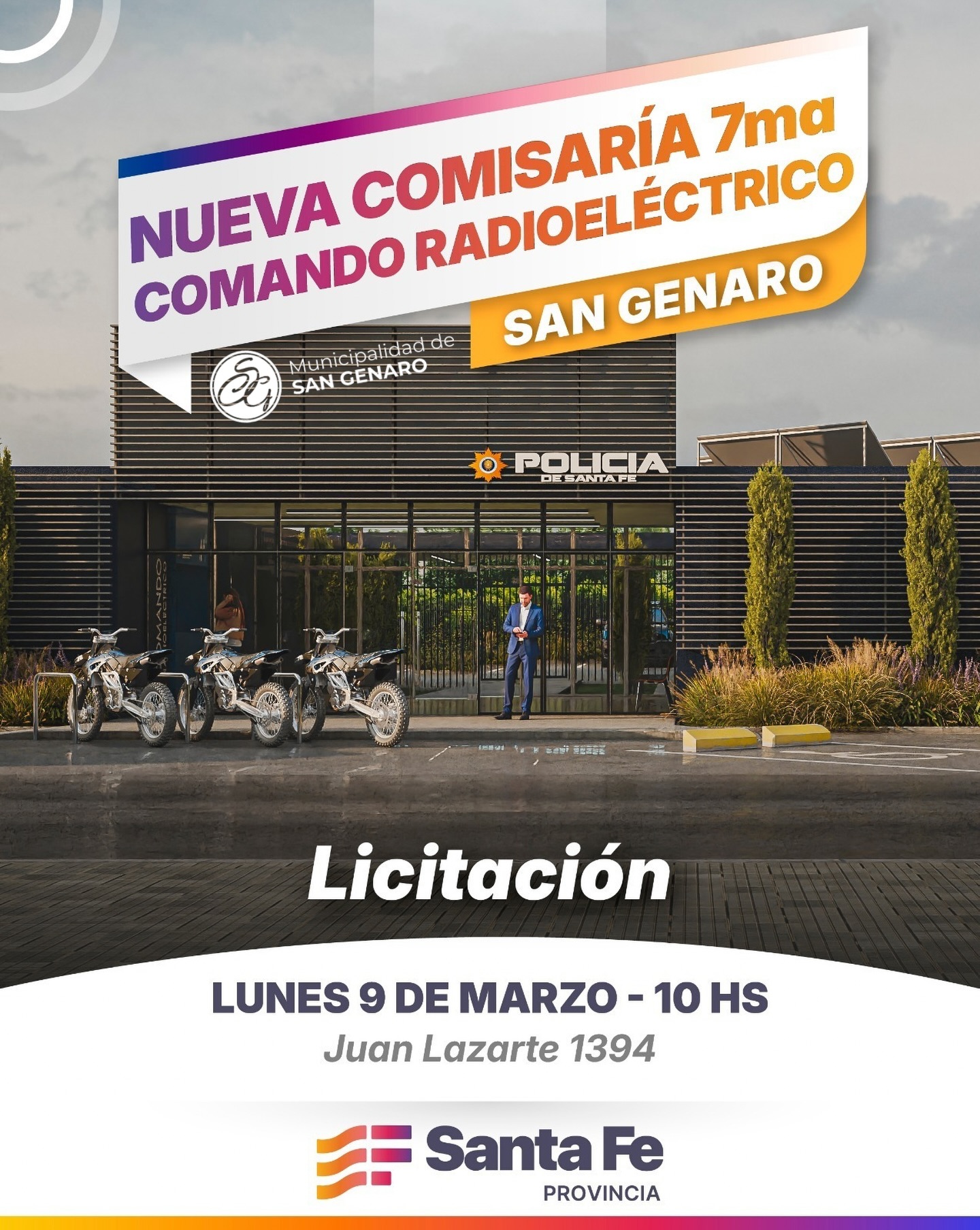 El Gobierno de la provincia de Santa Fe llevará adelante el acto de apertura de sobres correspondiente a la licitación para la construcción de la nueva Comisaría 7ª y la sede del Comando Radioeléctrico en la ciudad de San Genaro.